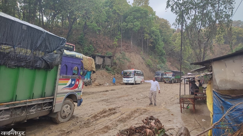 According to District Police Chief Yadav Dhakal, the vehicle started slipping when the water was poured on the Dhulamya Highway. In addition, due to the rain since morning, the thick dust on the highway has turned into mud, and the vehicle is unable to move due to slipping on the highway.