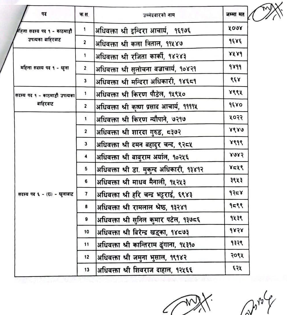 महासचिवमा मिश्र प्यानलकै वरिष्ठ अधिवक्ता केदारप्रसाद कोइराला निर्वाचित भएका छन् । कोषाध्यक्षमा वरिष्ठ अधिवक्ता जगतबहादुर कार्की निर्वाचित भए ।