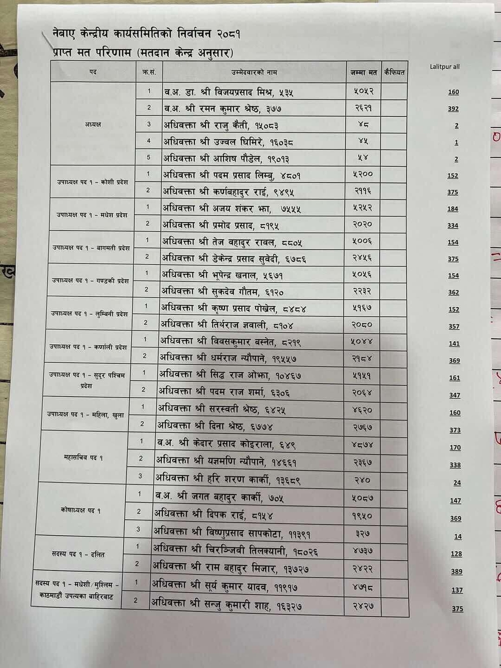 ५ हजार ५२ मत प्राप्त गर्दै मिश्र बारको अध्यक्षमा निर्वाचित भएका हुन् । उनका प्रतिस्पर्धी वरिष्ठ अधिवक्ता रमनकुमार श्रेष्ठले २ हजार ६२१ मत प्राप्त गरेका थिए ।
