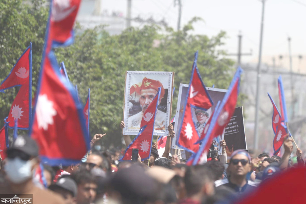 प्रमुख दलका मुख्य नेता सत्ता राजनीतिमा केन्द्रित हुँदा पूर्वराजा ज्ञानेन्द्र शाह सडकमा निस्कन थालेका छन् । गणतन्त्र स्थापना गरेको १७ वर्षपछि पूर्वराजा पहिलोपल्ट यसरी सडक प्रदर्शनमा निस्केका हुन् । यसरी गणतन्त्रमाथि प्रश्न उठाउँदै पूर्वराजा सडकमा आइपुग्दा यो वर्ष गणतन्त्रको नूर निहुरियो भने पुराना पार्टीहरू झस्किन पुगे ।