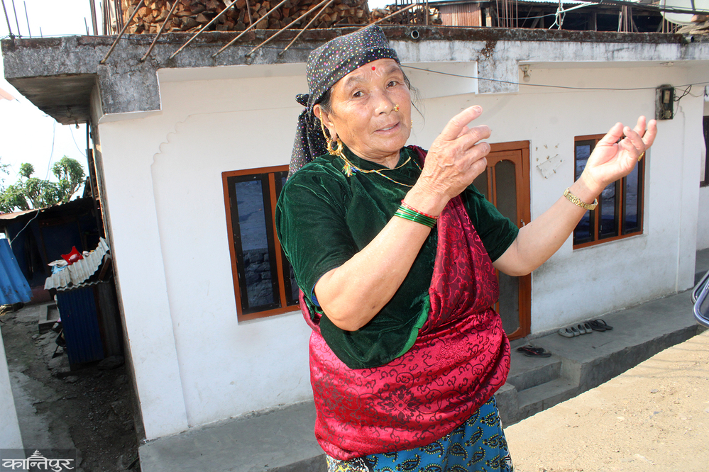 66-year-old Bodhmaya Gha cannot see well with her eyes. She was sleeping inside the house when the earthquake happened. Shortly after the house was shaken, he heard the sound of the whole village. He, who is blind, did not dare to leave the bed. She was listening to the sound of the door and the house breaking. "My son went to take a bath, ran into the house and pulled me out," she said, "I was only dragged out into the courtyard by my son, and the house where I was sleeping collapsed into the ground after an earthquake." "That day was Saturday, otherwise all the children would have been in school," she said. She said that after the house was destroyed, she went to the corn field in search of an open place and spent the night under the open sky. She said, "All the harvests were finished, we couldn't get anything out. We were starving for three weeks, then relief came and it was easy." "We were hurt by the earthquake, we lived in a tent for a year," she said, "It was not like our land, so we went back to the old house and lived in a tent to see how many days we had." "There is no job, no pension, we had to build a house, we have built a house even with loans," she said.