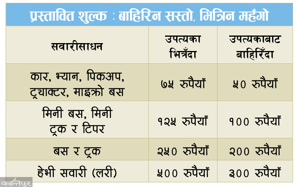 Ganesh Bahadur KC, executive director of Road Board Nepal, said that the fee will be determined after the Cabinet approves it. "There was a discussion in the physical infrastructure ministry about the fees set by the road department," he said, "We will send the council of ministers by Thursday to approve the fees set by the department."