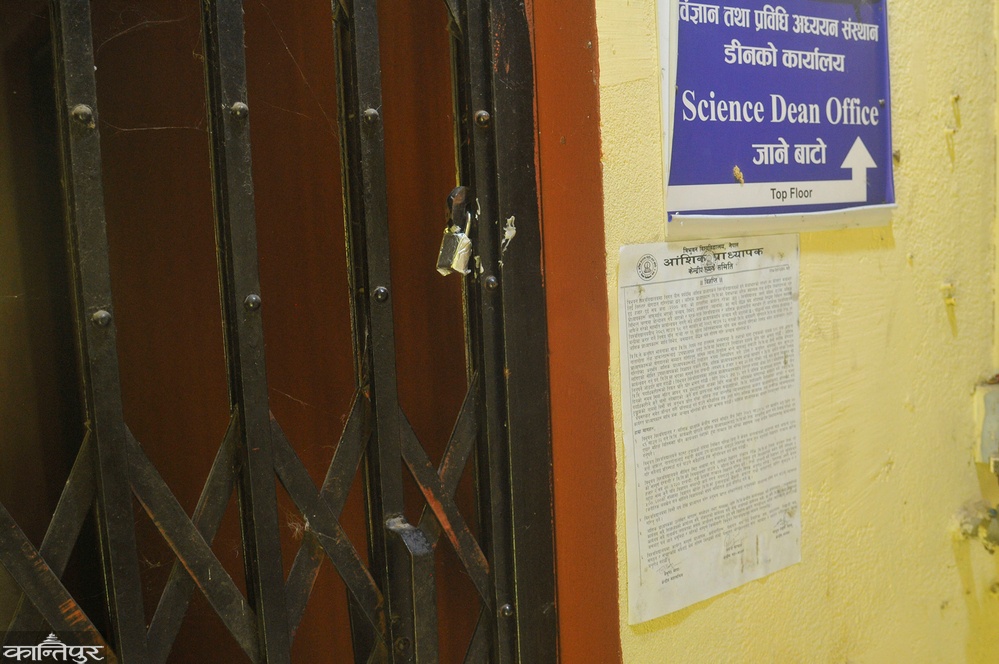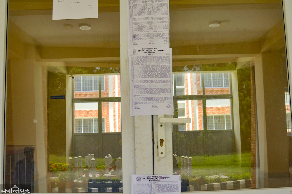 The lockout of the union has been going on for 15 days and partial professors' union has also locked the vice chancellor, rector, registrar and service commission. Expressing displeasure after the process of appointing associate professors, associate professors and professors through interviews and interviews, the association's president Gokul Limbu, co-president Rajendra Acharya, general secretary Vaikunth Thapa and others have locked down.