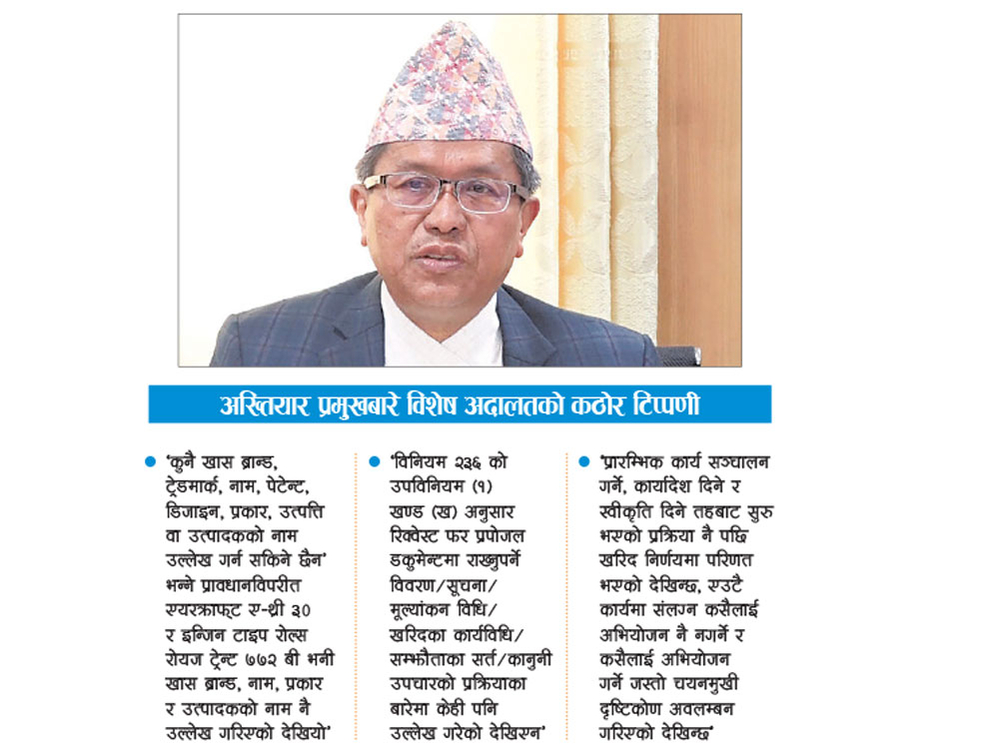 'Bringing someone under the scope of action and completely exempting others involved in the same process is a danger of creating double standards in the justice system,' the court commented. Based on the proposal recommended by the sub-committee formed by the committee chaired by Rai, the corporation issued the Request for Proposal (RPF) on 10 August 2073. It is said in the verdict, "It seems that the process that started from the level of conducting the initial work, giving orders and giving approval, later turned into a purchase decision."