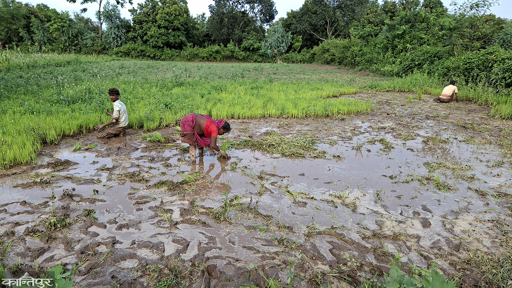 सप्तरीका किसानलाई पनि धान रोप्न भ्याइनभ्याइ छ । एक सातायता छिटफुट वर्षा भइरहे पनि खेतमा पानी नभरिएर उनीहरू चिन्तित थिए । शनिबार रातभरि पानी परेपछि विद्युतीय मोटर र पम्पिङ सेटबाट पानी थपेर रोपाइँ गरिरहेका छन् । ‘रातभर वर्षा भए पनि रोपाइँ गर्न पर्याप्त पानी पुगेको छैन,’ राजविराज नगरपालिका–१५ भरुवाका ६० वर्षीय मिश्रीलाल यादवले भने, ‘जसोतसो रोपाइँ गरिसकेका धानका लागि रातिको वर्षाले राहत भए पनि बाँझो खेतमा त पानी भरिएकै छैन ।’ अब धान रोप्न धेरै ढिलो भइसकेकाले बाँझो खेतमा पम्पसेटले पानी थपेर रोपाइँ गर्नुपर्ने बाध्यता रहेको उनले बताए ।