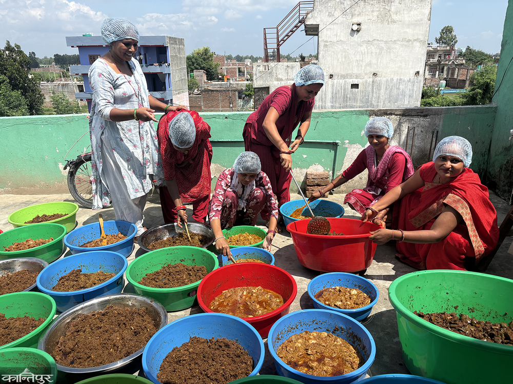 After her husband got employed, she joined a group of women camping in the market area to educate their children and started a pickle business. Housewives of Gaushala Bazar have started producing Saheli Achar together with their friends. Making good use of her free time, she has started making delicious pickles by purchasing agricultural products that are wasted in households. 11 housewives have started pickle business.