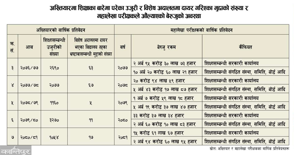 facts are poorly analyzed. In which there is a trend of misusing funds by showing unnecessary expenses, hiding funds in the name of building and improving physical structures and using them for personal gain, irregularity of scholarship funds, dormitory expenses and government and non-government assistance funds. Similarly, there is a trend of appointing teachers under political influence or taking irregular benefits, taking bribes when transferring teachers, providing textbooks late or providing old ones, making irregularities in the amount of midday meals, creating bills without purchasing educational materials, and making financial irregularities.