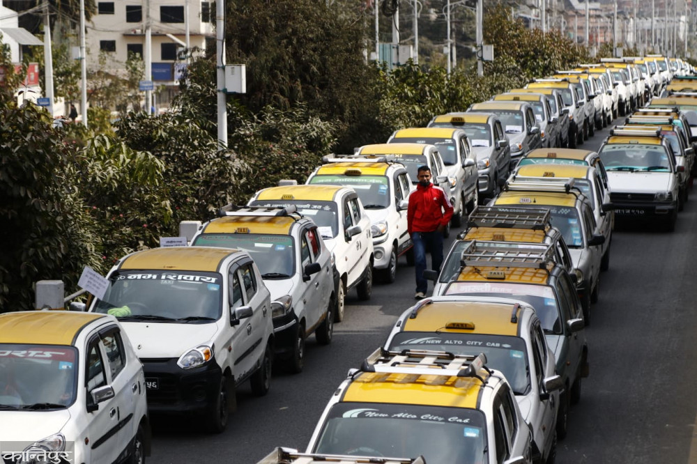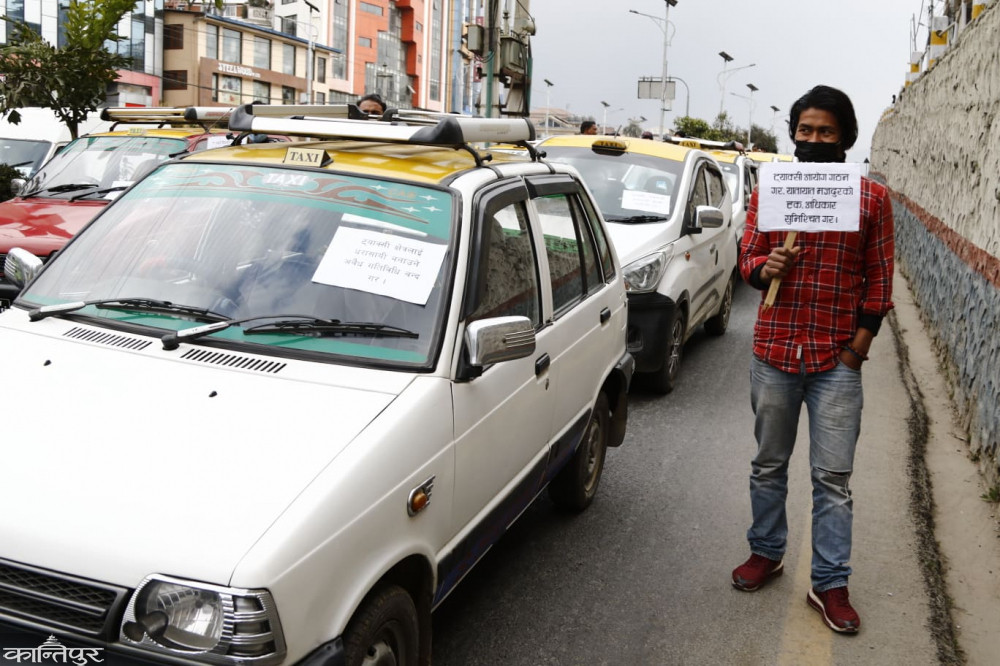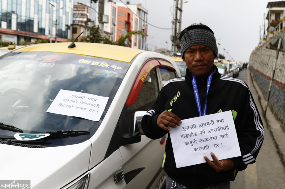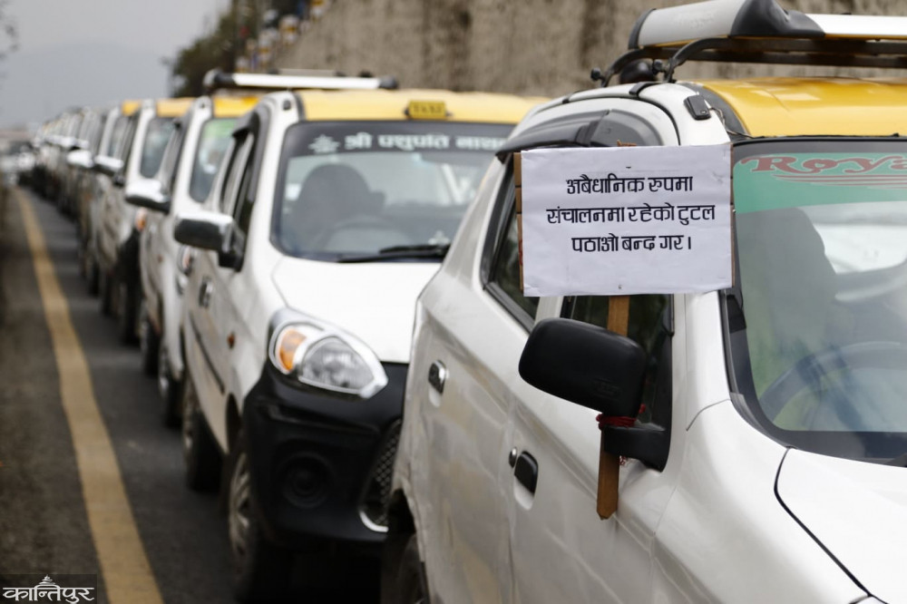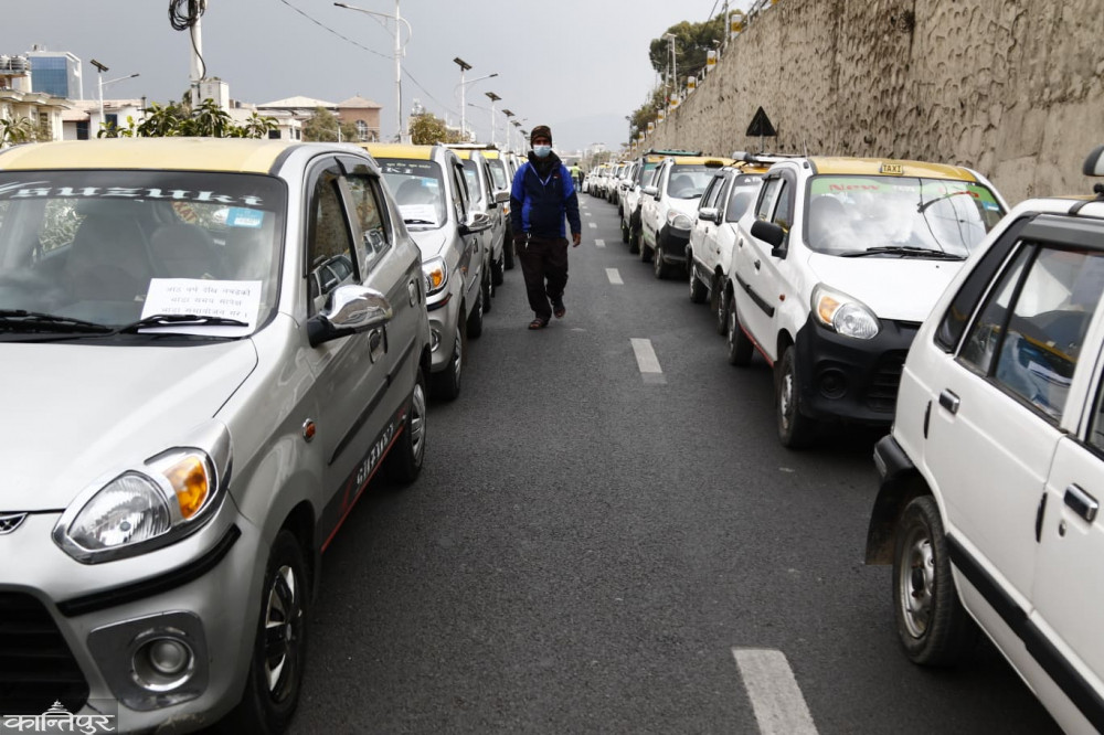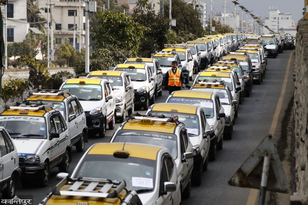 टुटल र पठाओको विरोधमा ट्याक्सी व्यवसायीको प्रदर्शन [तस्बिरहरु]