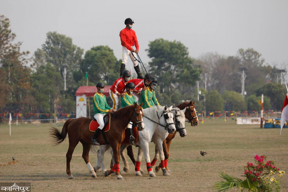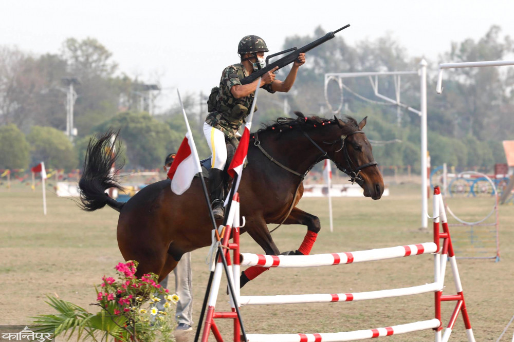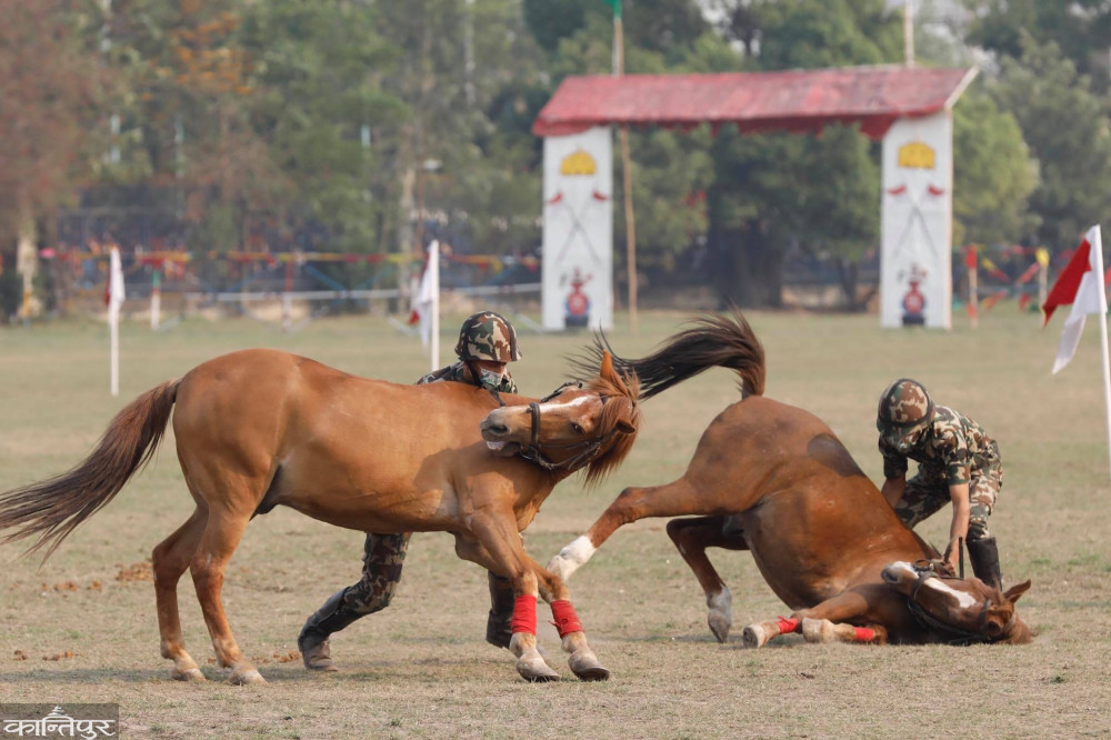 नेपाली सेनाका तर्फबाट आजै टुँडिखेलमा अश्वकला, मोटरसाइकल खेल, शारीरिक व्यायाम, युद्धकलालगायतको प्रदर्शन गरिन्छ । आजकै दिन ललितपुरमा पनि एउटा कानो घोडा दौडाएर घोडेजात्रा मनाउने परम्परा छ । गत वर्ष कोरोना महामारीका कारण बन्दाबन्दी जारी गरिएकै दिन घोडेजात्रा परेकाले कार्यक्रम स्थगित गरिएको थियो । यस वर्ष पनि सेनाले थोरैलाई आमन्त्रित गरेर सांकेतिकरूपमा मात्र जात्राका कार्यक्रमलाई निरन्तरता दिइएको हो ।