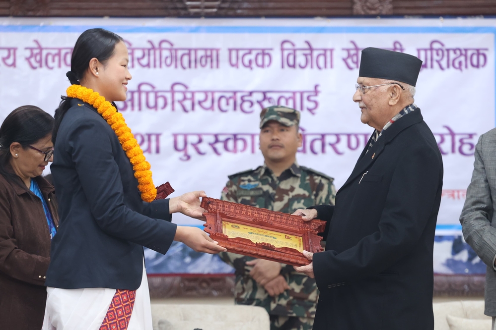 युवा तथा खेलकुद मन्त्रालयले प्रधानमन्क्री निवास, बालुवाटारमा आयोजित कार्यक्रममा नेपाल सरकार, मन्त्रिपरिषद्को गत मंसिर २८ गतेको निर्णयबमोजिम तोकिएको मापदण्डका आधारमा पुस्कार प्रदान गरिएको हो ।