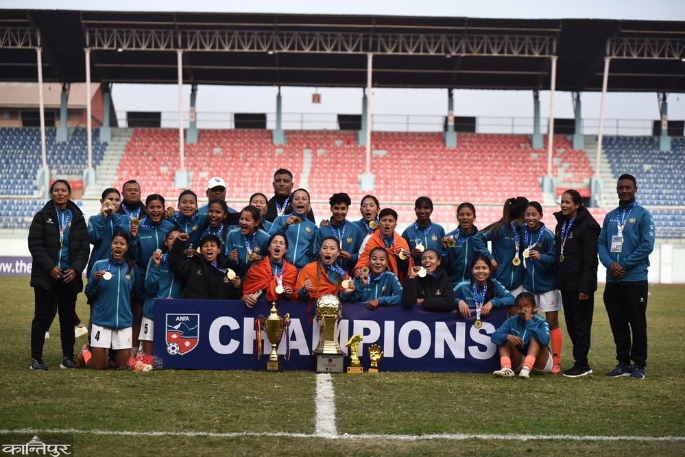 काठमाडौँ — एपीएफ नेपाली महिला फुटबलको लिगमा फेरि च्याम्पियन भएको छ । डिफेन्डिङ च्याम्पियन एपीएफले बुधबार दशरथ रंगशालामा भएको प्ले–अफ फाइनलमा पुलिसलाई ४–० ले हरायो । पूरा प्रतियोगितामा एपीएफले कुनै पनि खेल गुमाएन र अपराजित हुँदै उपाधि जितेको हो ।