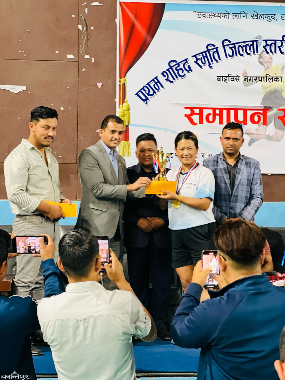 उता महिला सिंगलतर्फको च्याम्पियन प्रर्तिस्पर्धी टसी शेर्पाले युलि शेर्पालाई जितेर बिजेता भइन् । ८ टिमबीचको खेलमा शहनसिला श्रेष्ठ र दृष्टि थापा तृतीय भएका थिए । जनयुद्धमा सहादत पाएका सहिदको सम्झनामा गरिएको प्रतियोगिता शुक्रबारबाट सुरु भएर शनिबारसम्म चलेको थियो । विजेतालाई प्रतिनिधि सभा १ का संघीय सांसद माधव सापकोटाले पुरस्कार वितरण गरेका थिए । कार्यक्रममा लिसंखुपाखर गापाका अध्यक्ष राजु लामा ,नेता भरत पराजुली रदिप , सहिद परिवारका प्रतिनिधि उपस्थित थिए ।