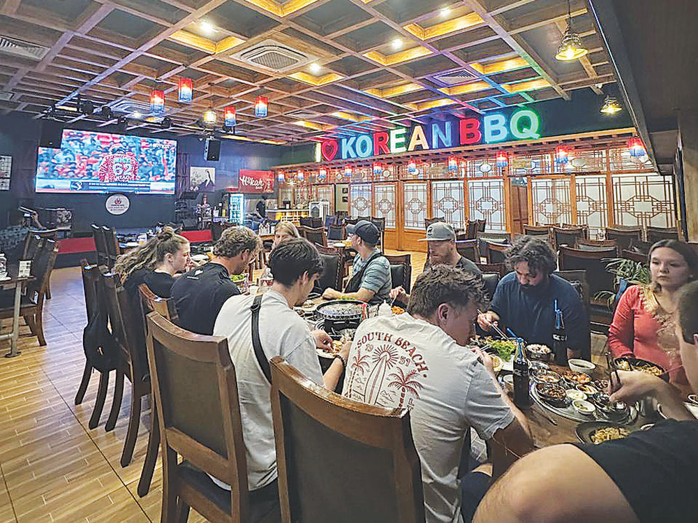 कान्तिपुर म्याक्सबाट प्रत्यक्ष प्रसारण भइरहेको आईपीएलअन्तर्गत बुधबार राजस्थान रोयल्स र कोलकाता नाइट राइडर्सको खेल हेर्दै ललितपुरस्थित कोरियन बीबीक्युका ग्राहक । तस्बिर : कान्तिपुर