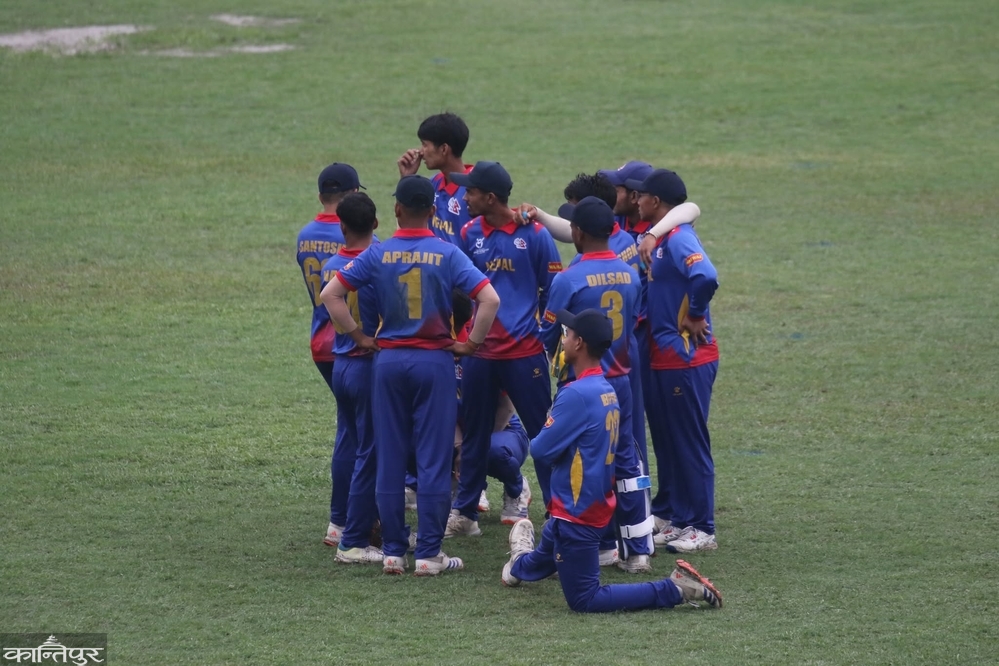 Rai tried to take the game away from Nepal by hitting 8 fours and 5 sixes in an innings of 96 balls. Nepal dismissed both openers Aion Misbah (4) and Akshat Rai (0) in the first over, but Kiran Rai and Ryan Khan shared 75 runs in 16 overs for the third wicket. Ryan played 51 balls and scored 35 runs by hitting 3 fours and 2 sixes.