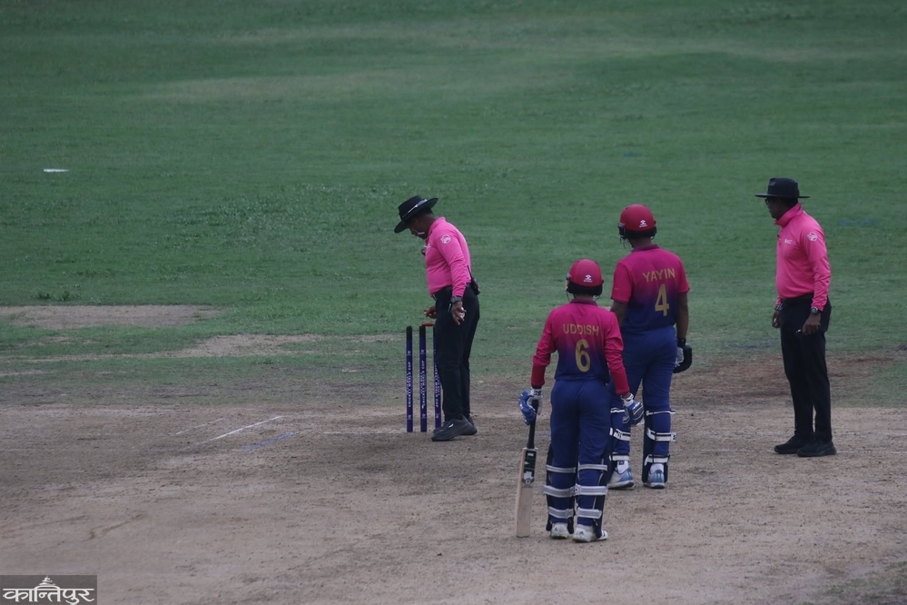2 balls before the game was halted, Santosh Yadav's lbw dismissal of Karan Dhiman for 15 runs became Nepal's decisive turning point in the game, which took Nepal ahead of UAE in the Duckworth Lewis method . By then it was 5.35 in the evening . After 20 minutes, the umpires said that no more matches could be played, and the result was in favor of Nepal .