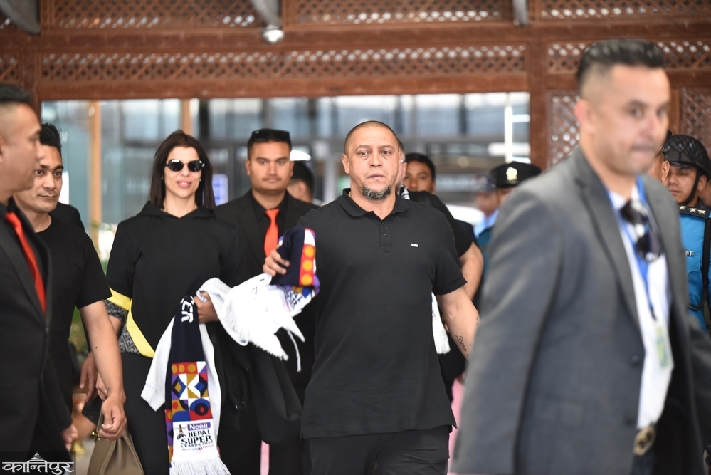 Brazilian football legend Roberto Carlos came to Nepal on Tuesday. He landed at the Kathmandu airport a little while ago to cover the opportunity of the ongoing Nepal Super League (NSL). He was also honored with pomp and ceremony at the airport.
