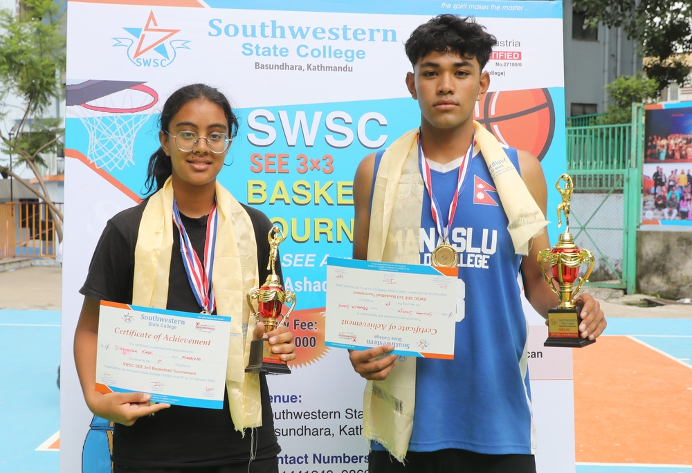 काठमाडौँ — मनास्लुले ब्वाइज र वारियर्सले गर्ल्समा एसडब्लूएससी एसईई थ्री बाइ थ्री बास्केटबल प्रतियोगिताको उपाधि जितेको छ ।