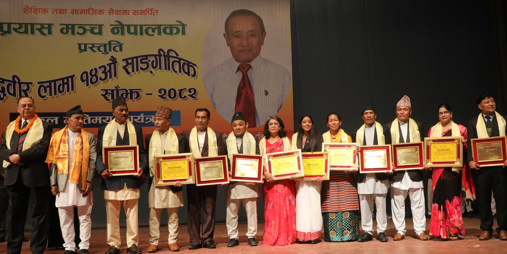 They were honored by former Prime Minister Jhalnath Khanal, South Asian Games record runner Vaikunth Manandhar, program coordinator Jashu Lama, Buddhaveer Lama and others.