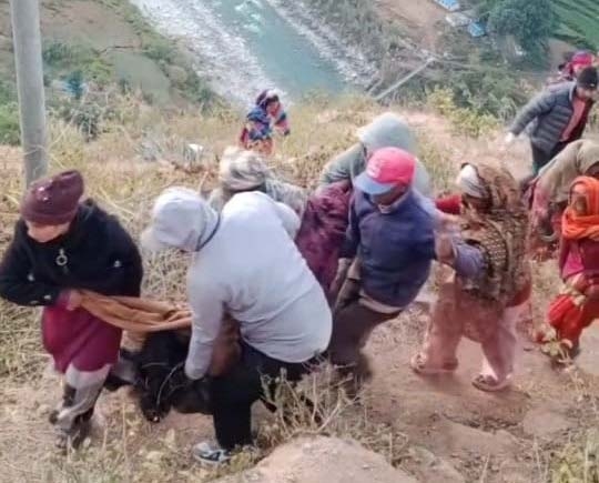 बझाङ — भिडियोमा ठाडो भीरको उकालो बाटोमा तीन पुरुष र दुई महिलाले एउटी महिलालाई झाङ्गलझुङ्गुल पार्दै बोकिरहेका छन् । अप्ठ्यारो बाटोमा घरी उनको टाउको भुइँमा लाग्छ, फेरि सबै जनाले वरिपरिबाट उठाएर अलि अगाडि पुर्याएपछि भुइँमा बिसाउँछन् । सबै लागेर उनलाई हातखुट्टा समातेर झ्याइँकुटी गर्दै मुस्किलले बाटो सम्मजस्तो परेको ठाउँमा पुर्याउँछन् ।