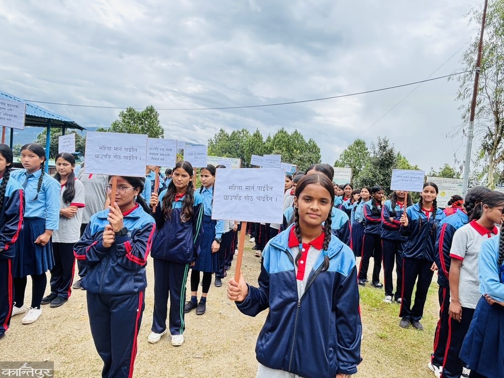 The girls of Mangalsen of Achham have taken out a rally against the Chhaupadi malpractice. Students of Shodsha Mavi in Mangalsen and other girls took out a protest rally on Tuesday with slogans such as 'You can't kill women, you don't need Chhaupadi Goth', 'Don't boycott menstruation, give respect', 'Implement the law', 'Let's end Chhaupdi malpractice', let's respect women's rights.