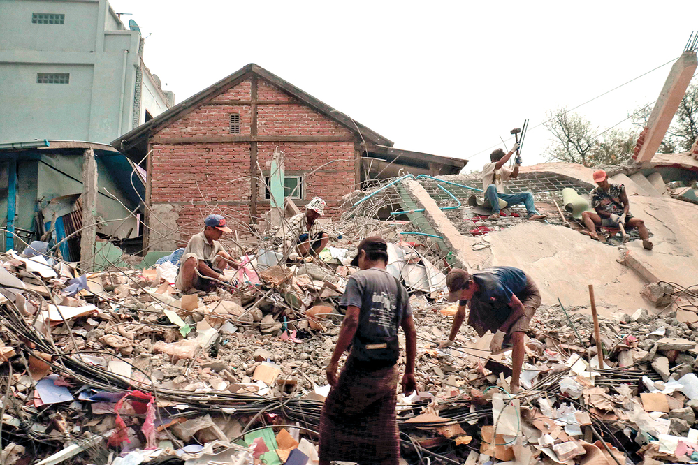 म्यानमारमा दुई साताअघि गएको शक्तिशाली भूकम्पमा कम्तीमा ३ हजार ६ सय ८९ जनाले ज्यान गुमाए । म्यानमारको सैन्य सरकार जुन्टाका अनुसार ५ हजार २० जना घाइते भएका छन् भने १ सय ३९ जना अझै बेपत्ता छन् । भूकम्पका कारण थाइल्यान्डको राजधानी बैंककमा पनि कम्तीमा १८ जनाले ज्यान गुमाए । भूकम्पको केन्द्रबिन्दु रहेको मन्डाले क्षेत्रमा १ हजार ५ सय ९१ घरमा क्षति पुगेको थियो । म्यानमारको सागिङ सहरको उत्तर–पश्चिममा दुई साताअघि ७.७ म्याग्निच्युडको भूकम्प गएको थियो ।